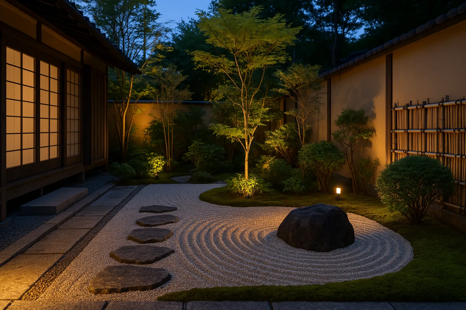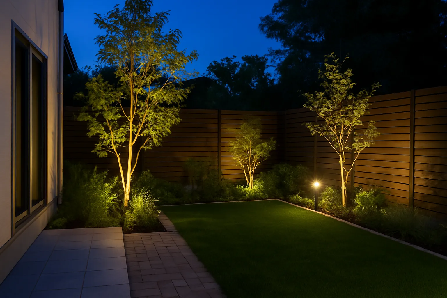 照明で昼も夜も美しい庭に
