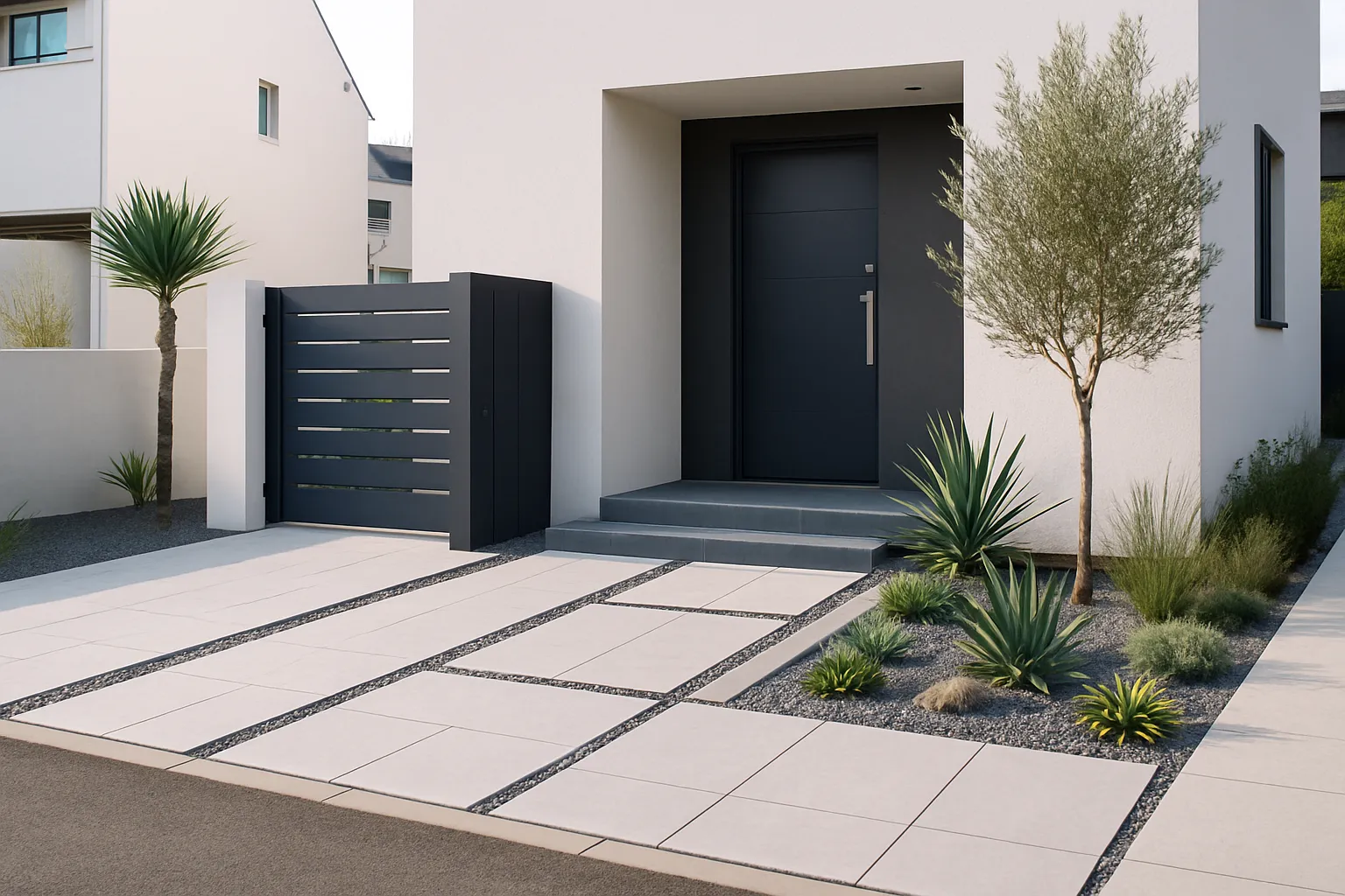 「外構」とは、住宅の外まわり(門扉・フェンス・駐車場・庭など)を構成する工事全般のことを指します。外構工事をうまく取り入れることで、見た目の美しさだけでなく、機能性・防犯性・メンテナンス性の向上も期待できます。たとえば、